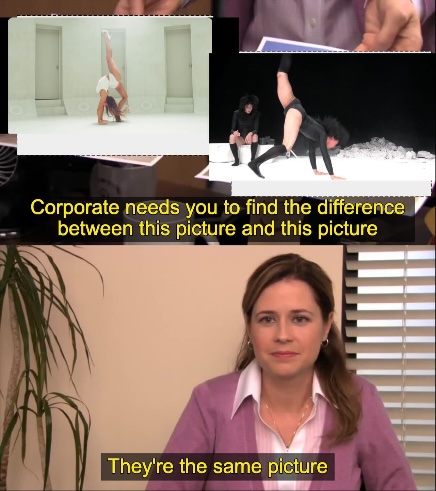 Meme 6 greift auf das bekannte Template „They’re The Same Picture“ zurück. Dabei handelt es sich um ein Split-Meme, das auf einer Szene aus der Fernsehserie „The Office“ basiert, in der die Figur Pam zwei Bilder präsentiert, bevor sie im zweiten Panel sagt, dass es sich um dasselbe Bild handelt („Corporate needs you to find the difference between this picture and this picture“ – „They’re the same“).