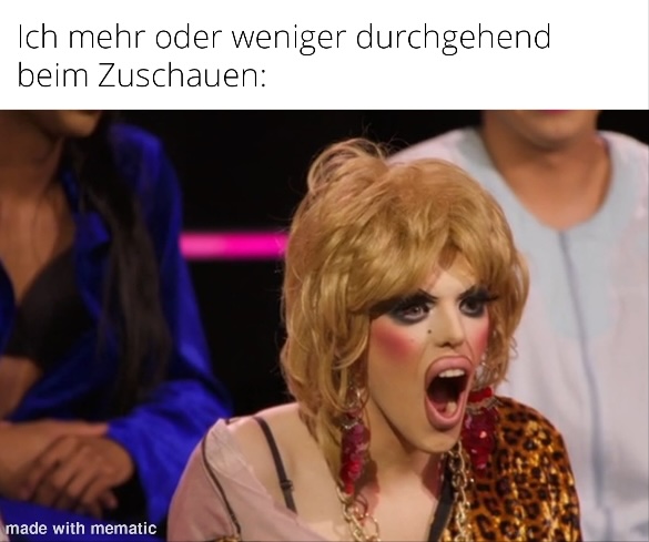 Generell liefert Tabea Martins Performance in ihrer popkulturellen Anlage einen großen Pool an Assoziationen und Kontexten, die via Meme nicht nur eingefangen werden können, sondern mit einer derartigen Pointiertheit und Unmittelbarkeit daherkommen, dass eine rein auf Text basierende Kritik an diesem Punkt – möglicherweise – Grenzen erkennen lässt. Die in Meme 5 gezogene visuelle Bill-Kaulitz-Assoziation leuchtet unmittelbar ein.